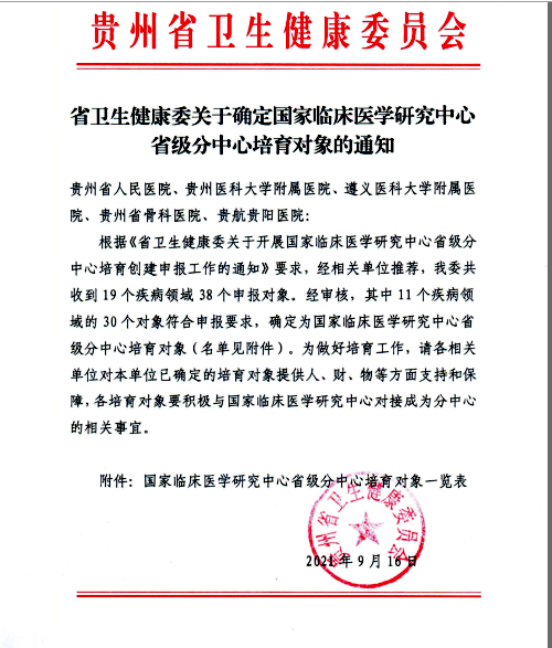 根据《省卫生健康委关于开展国家临床医学研究中心省级分中心培育创建申报工作的通知》,经相关单位推荐后,经审核,其中11个疾病领域的30个对象符合申报要求,确定为国家临床医学研究中心省级分中心培育对象。437必赢会员中心附属医院《医学检验》等多个申报领域荣获国家临床医学研究中心省级分中心培育对象。