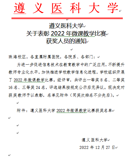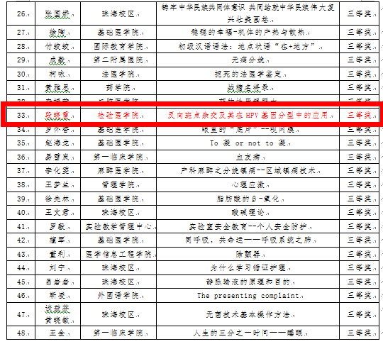 热烈祝贺我院段晓雷博士在学校组织开展的2022年微课教学比赛中,以作品《反向斑点杂交及其在HPV基因分型中的应用》参赛,荣获三等奖一项!