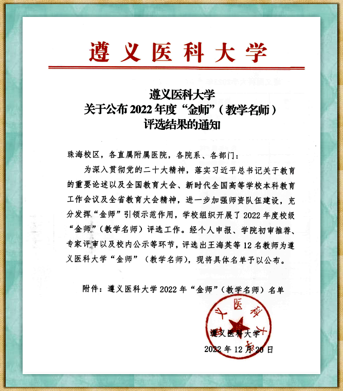 热烈祝贺我院闵迅、葛晓军两位教授荣获437必赢会员中心2022年度“金师”(教学名师)称号!