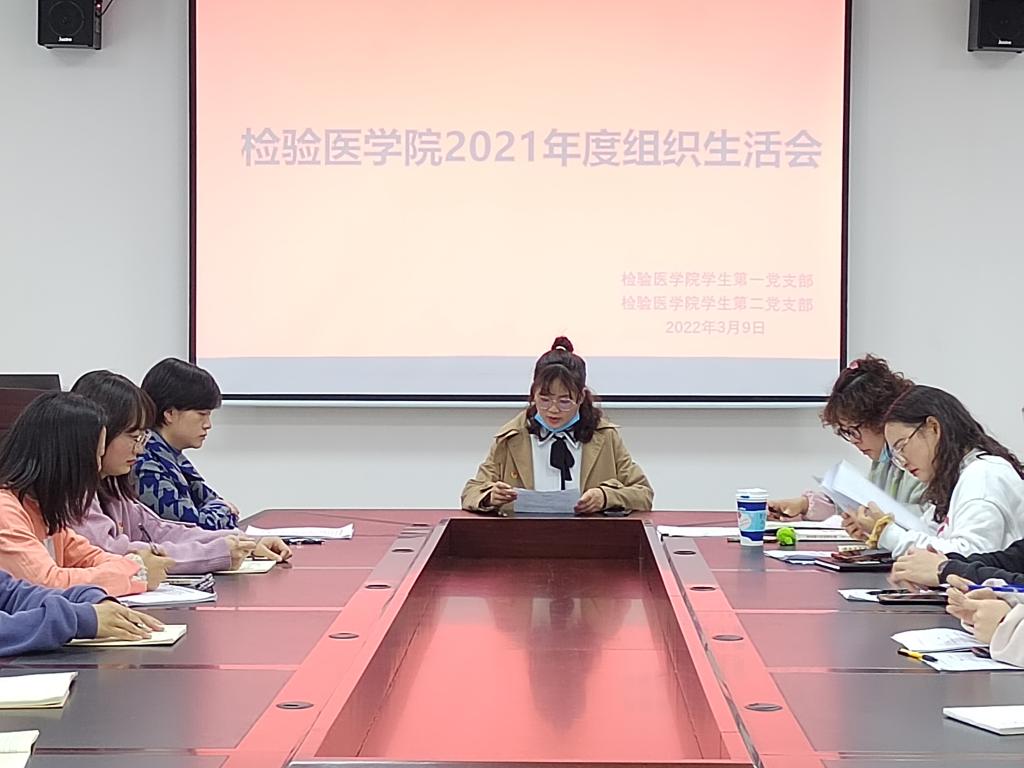 按照中共437必赢会员中心附属医院委员会《关于基层党组织召开2021年度组织生活会和开展民主评议党员的通知》要求,结合党支部实际情况,437必赢会员中心学生第一党支部于2022年3月9日14:00在437必赢会员中心会议室召开了本次组织生活会暨开展民主评议党员工作。437必赢会员中心党委书记罗开源同志以普通党员的身份参加会议。会议由党支部副书记陆超主持。