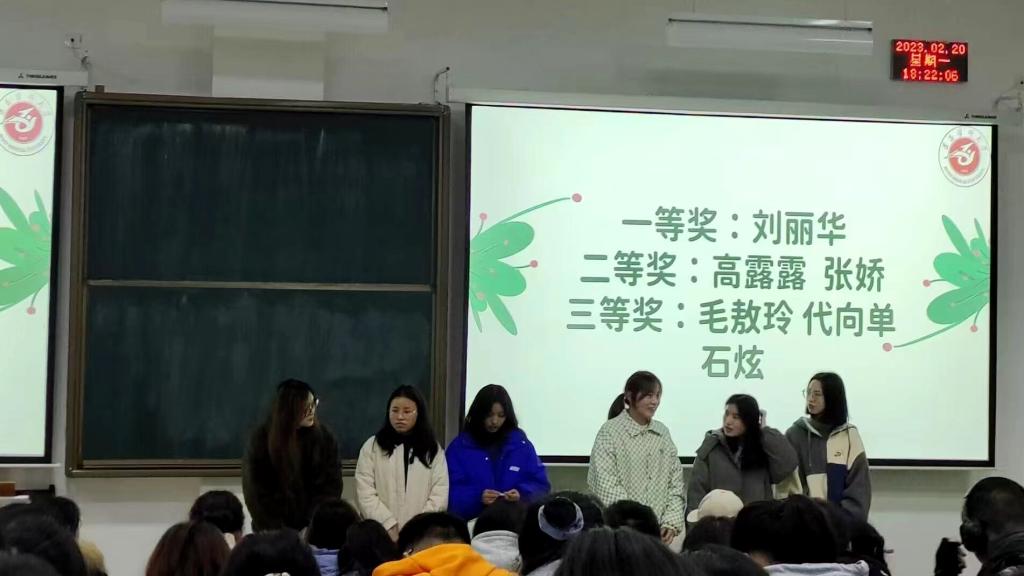 随后,学生会和团委分别进行了颁奖仪式。学生会为在寒假中参加“卯兔贺岁——新年特别活动”脱颖而出的同学进行了颁奖,他们分别是一等奖—20级刘丽华,二等奖—21级的高露露和张娇,三等奖—20级的毛敖玲、代向单、石炫;接着颁发了本次读书月奖项,他们是一等奖—21级的杨桃仙,二等奖—22级陈小艳与袁杰,三等奖—21级的王思思、22级—卢玉立和杨晓钰。最后,团委为在“我为红包添新意”中获得奖项的同学进行表彰,他们是一等奖—20级刘丽华,二等奖—21级高露露、20级祖红,三等奖—20级何映旭、刘静池以及21级—张娇;在“我为我家添个福”活动中21级文朝旭获得一等奖。