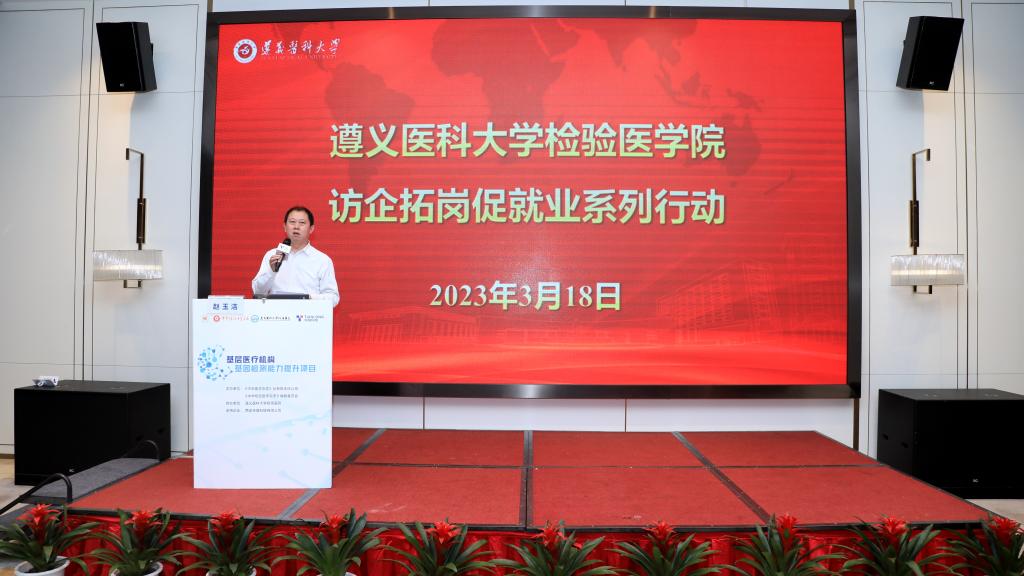推介会上,闵迅副院长首先对437必赢会员中心的历史沿革、专业发展情况、师资团队力量、人才培养模式的创新以及学院近几年来在临床、教学、科研等方面取得的成绩做了详细宣讲。随后他就医学检验技术专业2023届毕业生的生源质量、专业成绩、科研能力、英语四六级考试通过率以及在支援贵阳抗疫中的突出表现等方面进行详细介绍。接着与会同志就深化校企合作、拓宽就业渠道、拓展就业岗位、开展实习实训、加强就业指导等多方面进行深入交流探讨。