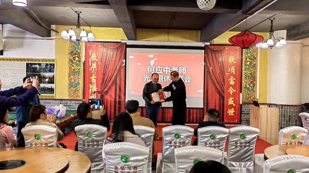 闵迅教授为何应中老师颁发“光荣退休证”及表达科室慰问