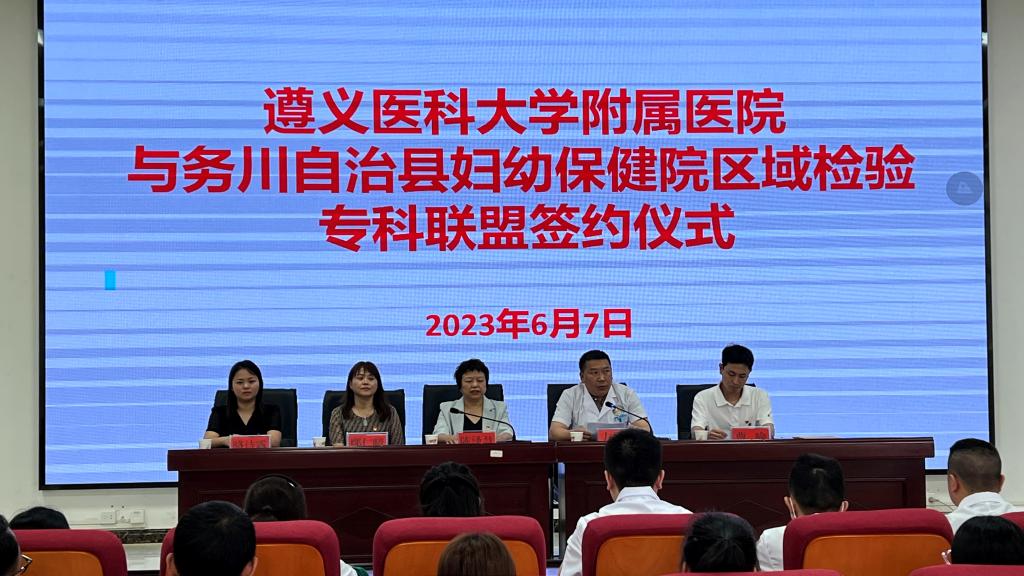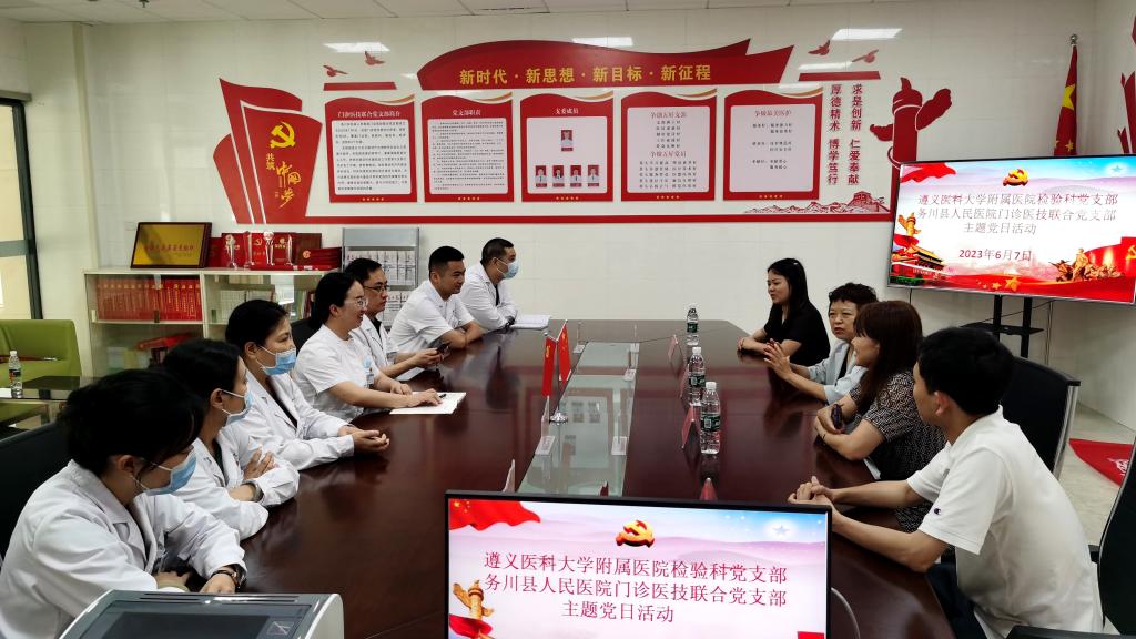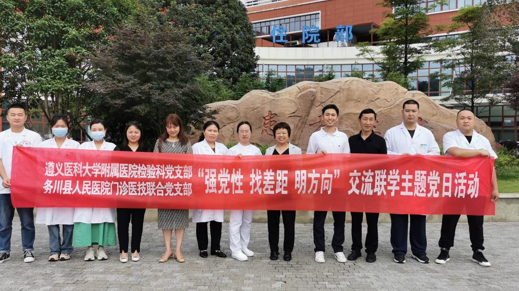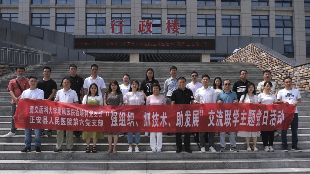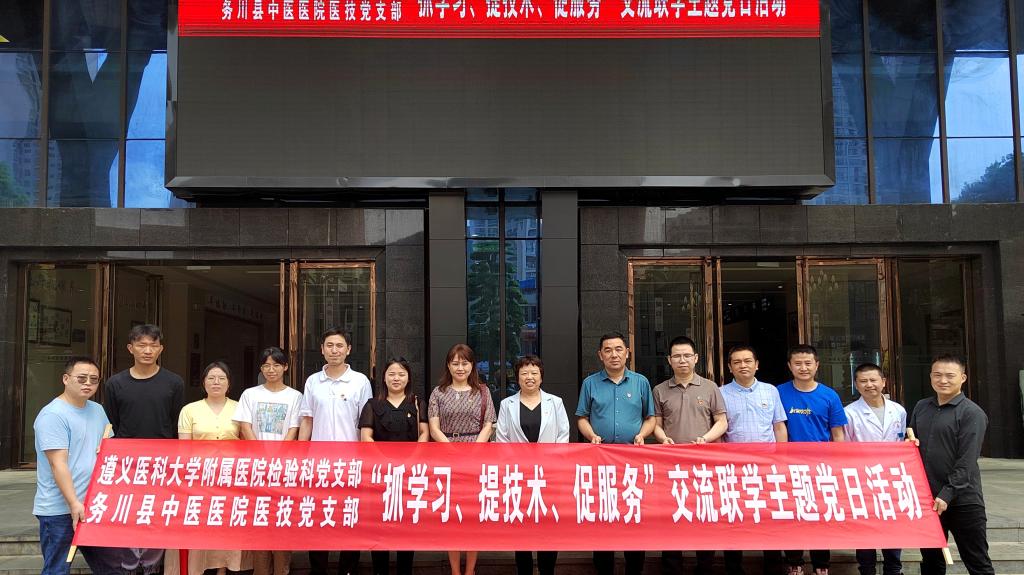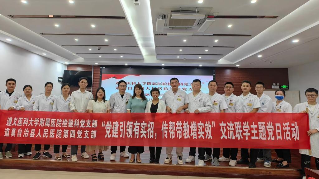 2023年6月7日至9日,437必赢会员中心附属医院检验科党支部赴务川、道真、正安县人民医院,中医院等七家区县级医院开展“抓党建、交流联学、促发展”主题党日活动。经检验科党支部认真策划、组建专家团队四人,由检验科党支部书记陈泽慧同志带队参加活动。活动内容以检验专科联盟签约仪式、集中授课及实验室交流等方式开展。