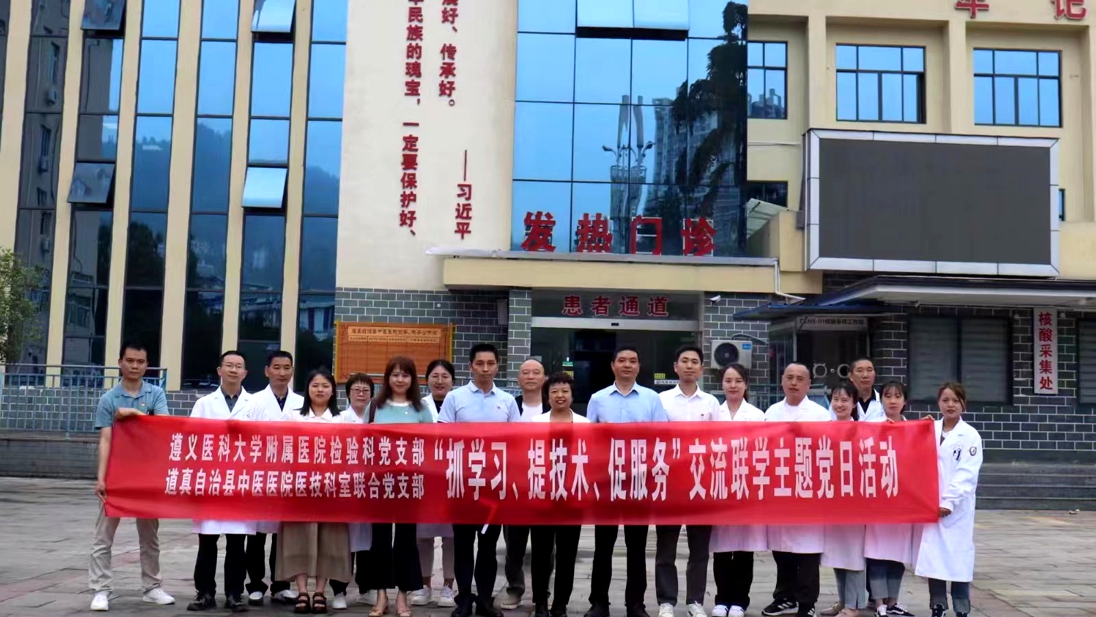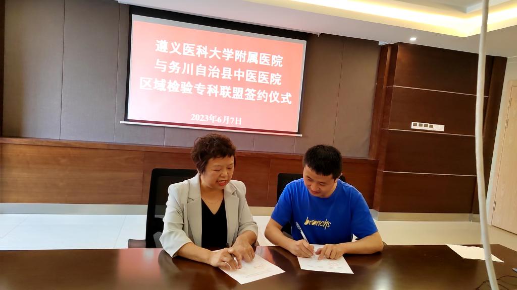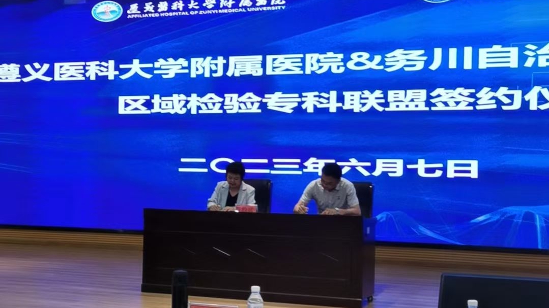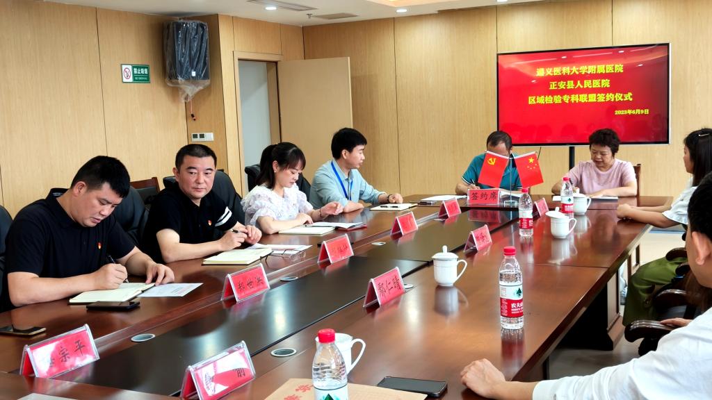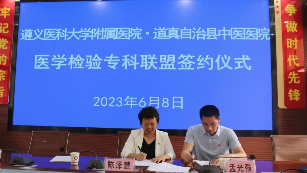2023年6月7日至9日,437必赢会员中心附属医院检验科党支部赴务川、道真、正安县人民医院,中医院等七家区县级医院开展“抓党建、交流联学、促发展”主题党日活动。经检验科党支部认真策划、组建专家团队四人,由检验科党支部书记陈泽慧同志带队参加活动。活动内容以检验专科联盟签约仪式、集中授课及实验室交流等方式开展。